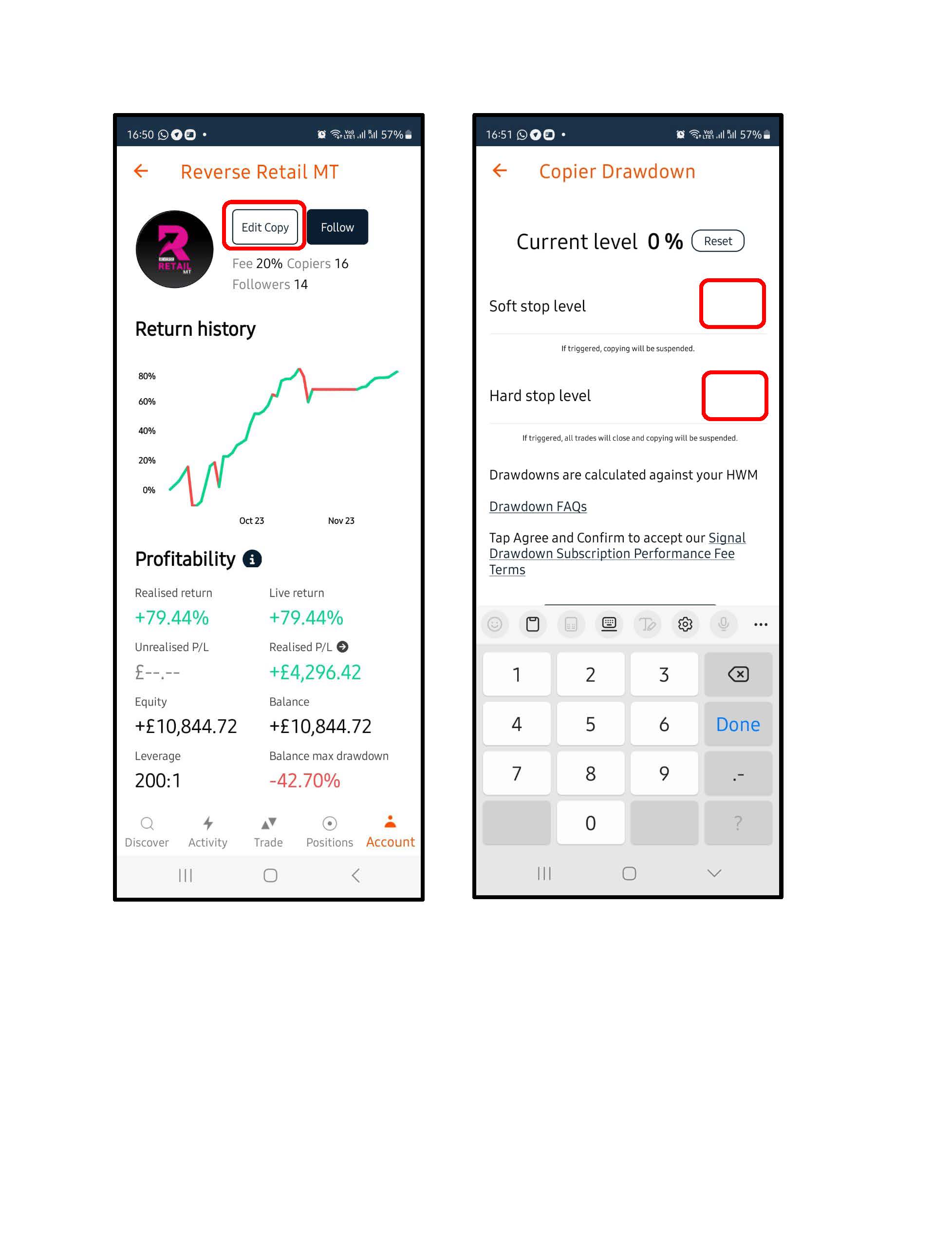 After you have set your trade size and agreed to copy, you need to set your drawdown levels.